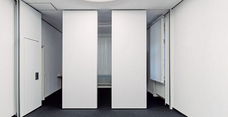 Soundproof folding partition and sliding walls operable movable door for office.