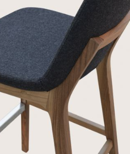Crowne Plaza Custom Tight Upholstered Bar Stool At Communal Table With Steel Metal, Wood-Look Legs.