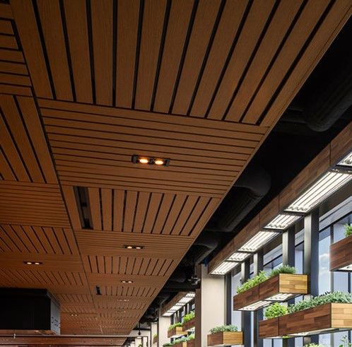 Fireproof Wood Color U-Shaped Metal Slat Ceiling.