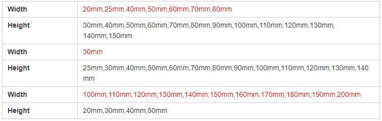 Custom, 100mm, 150mm, 200mm, 300mm