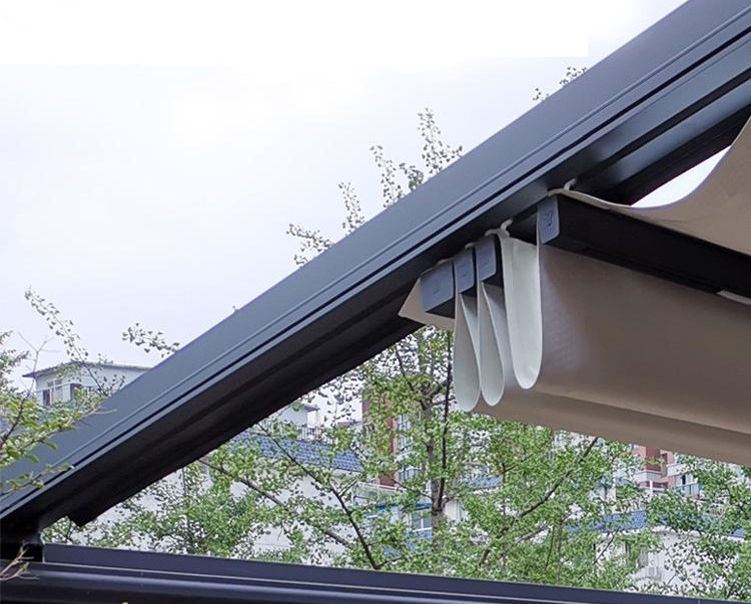 Easy Assemble, PVC Canvas Awning, Shade System with LED Strip Lights.
