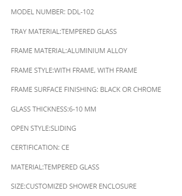 DDL-102, Clear Temper Glass Shower Rooms Black Or Chrome.
