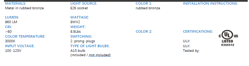 LUMEN;960 LM,COLOR TEMPERATURE;3000K,INPUT VOLTAGE:100-120V,LIGHT SOURCE:E26 socket.