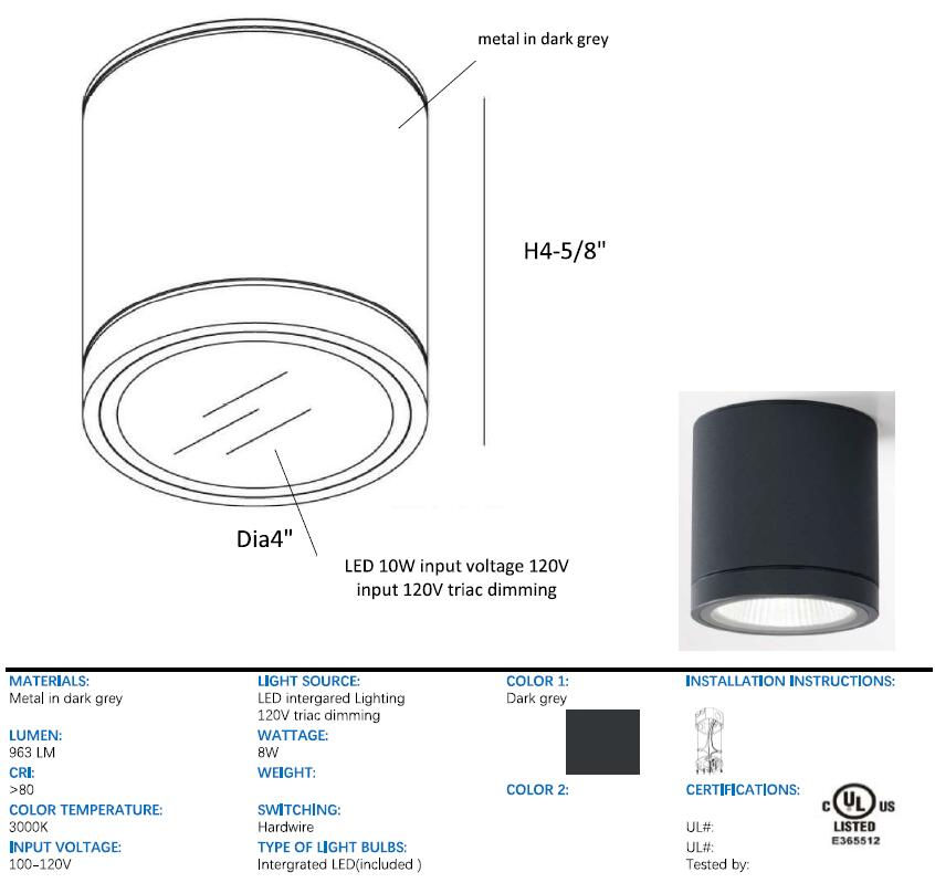 Lumen: 963LM, Color Temperature: 3000K, Input Voltage: 100-120V, Light Source: LED Integrated Lighting, 120V Triac Dimming