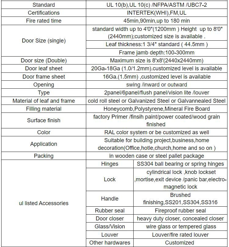 Fire Rated Time 45Min 90Min Up To 180 Min.