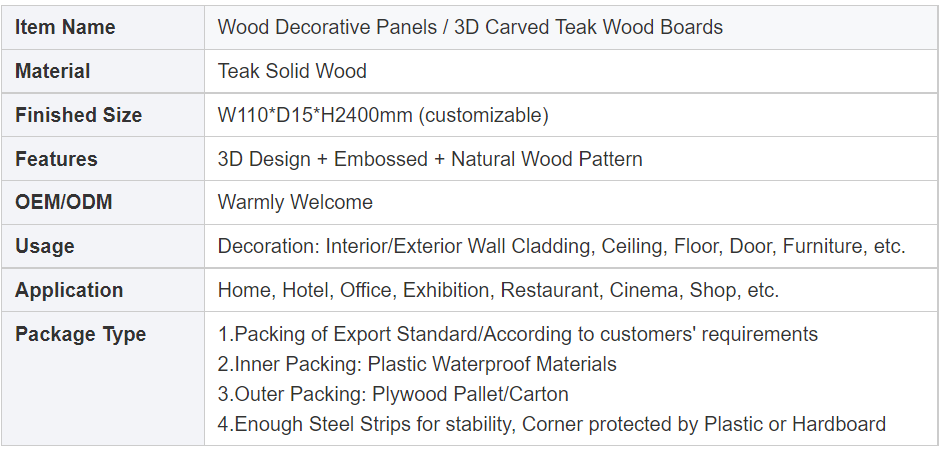 High End Premium Interior, Solid Wood Décor, Outdoor Teak Wall Boards Panel Deck.