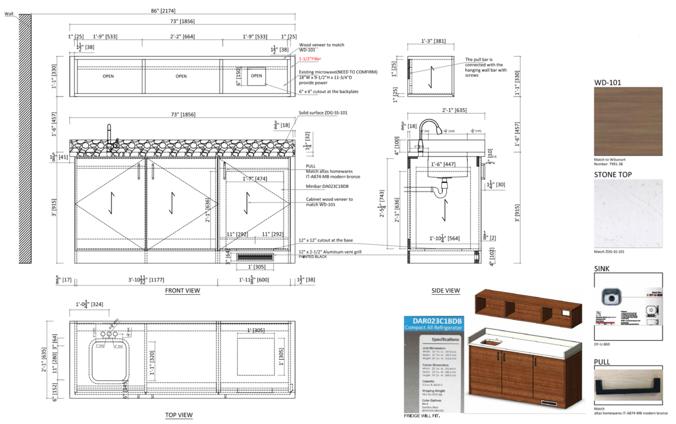 Base Cabinet: D73"* W25"* H36" Upper Cabiner: D73"* W15"* H13"