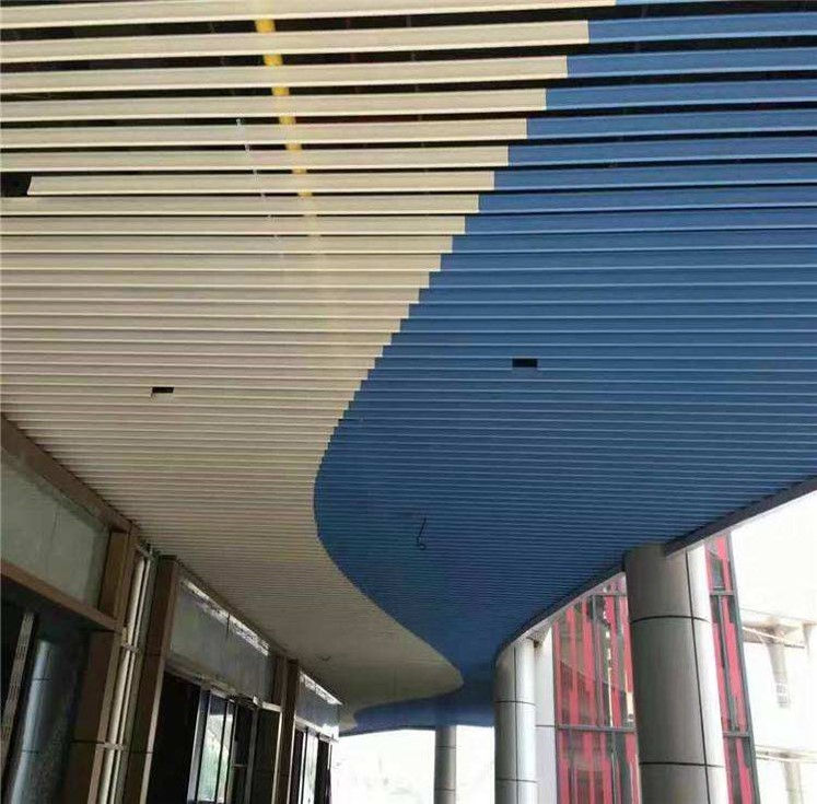 Fireproof Wood Color U-Shaped Metal Slat Ceiling.